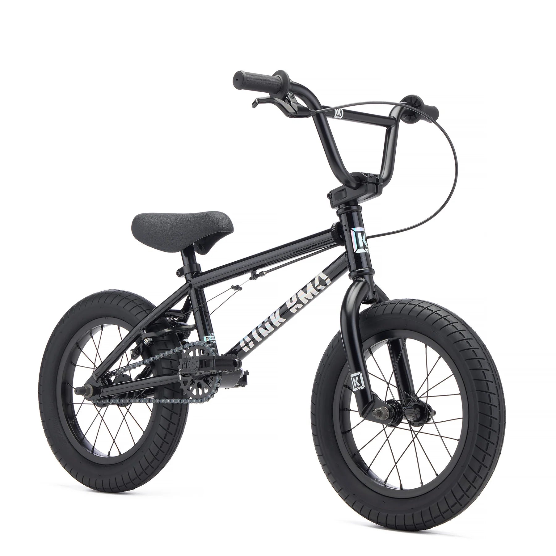 While 14” bikes are not all that common, the Kink Pump fills an important role in our line. Kids are not only getting into BMX at an earlier age, but they are also progressing at an even earlier age. The Pump 14” fits perfectly between 12” and 16” bikes and is built with proportionate geometry and specifications suited to this age and height rider. Carefully considered components ensure just the right fit and function for young riders, and the new gloss Galaxy Black colorway really shines.